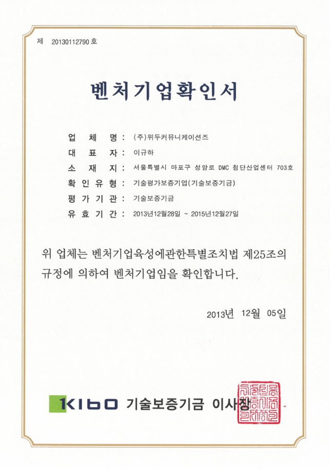 ㆍ 기술 신용 보증 – 벤처기업 인증
