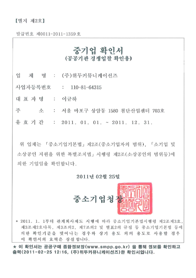 ㆍ 병무청 병역 특례업체 지정